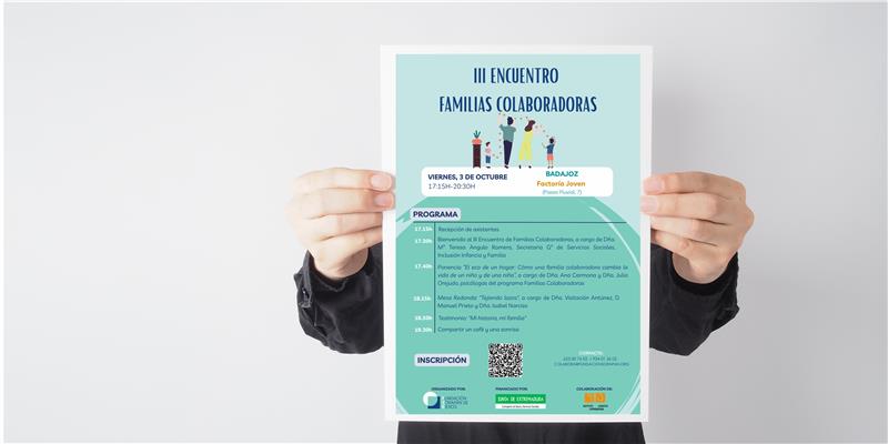 El próximo 3 de octubre de 2025 en horario de 17:15h a 20:30h. tendrá lugar en la Factoría Joven de Badajoz (Paseo Fluvial, 7) el III Encuentro Regional de Familias Colaboradoras de Extremadura, organizado por la Fundación Sorapán de Rieros y financiado por la Junta de Extremadura, a través de la Consejería de Salud y Servicios Sociales.